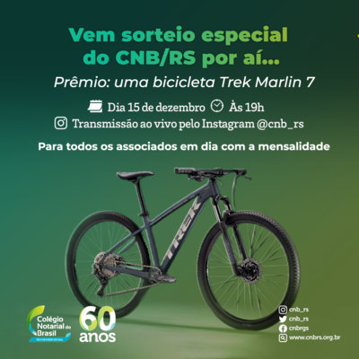 CNB/RS promove sorteio de uma bicicleta entre os associados no dia 15 de dezembro