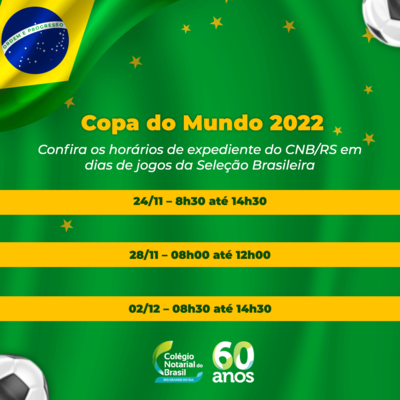 Confira os horários de expediente do CNB/RS em dias de jogos da Seleção Brasileira na Copa do Mundo 2022