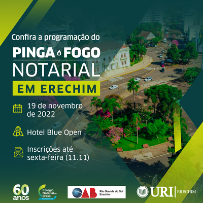 09/11/2022Pinga-Fogo Notarial em Erechim: confira a programação completaPinga-Fogo Notarial em Erechim: confira a programação completaLeia mais...