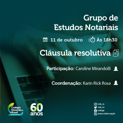 Cláusula resolutiva é tema do Grupo de Estudos Notariais do CNB/RS nesta terça (11.10)