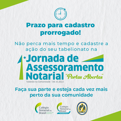 Prazo prorrogado: cadastre sua ação na 1ª Jornada de Assessoramento Notarial de Portas Abertas – “Tabelião na Comunidade” até 20 de setembro