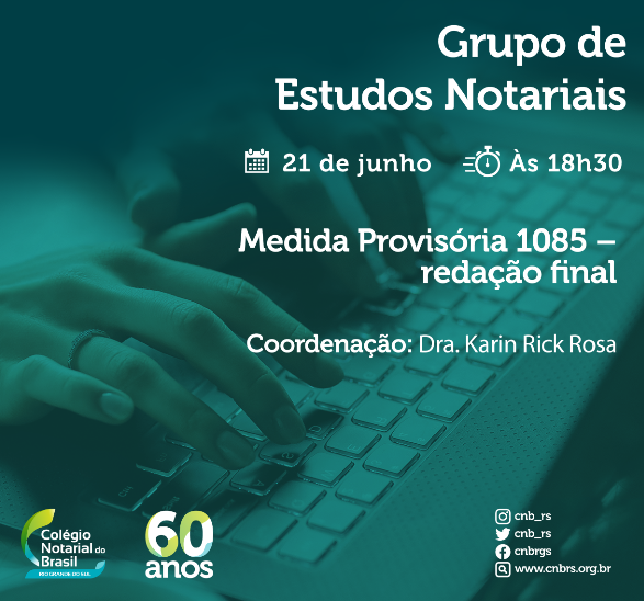 Mais uma edição do Grupo de Estudos Notariais do CNB/RS acontece nesta terça-feira (21.06)