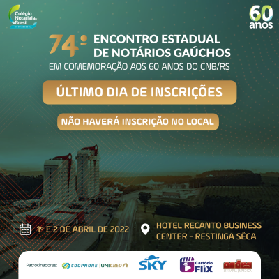 Hoje, 18 de março: Último dia de inscrições para o 74º Encontro Estadual de Notários Gaúchos