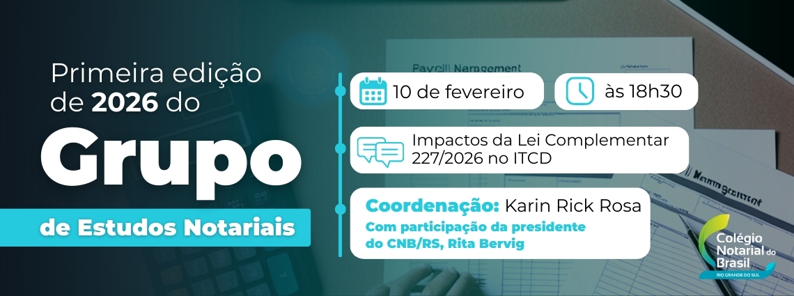 Primeira edição de 2026 do Grupo de Estudos Notariais abordará impactos da LC 227/2026 no ITCD