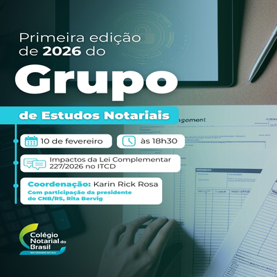 Primeira edição de 2026 do Grupo de Estudos Notariais abordará impactos da LC 227/2026 no ITCD